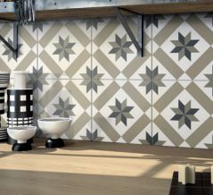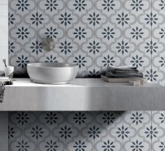 Picasso is a series of 200 x 200mm decorated glazed floor tiles reminiscent of cement and encaustic tiles. Available in