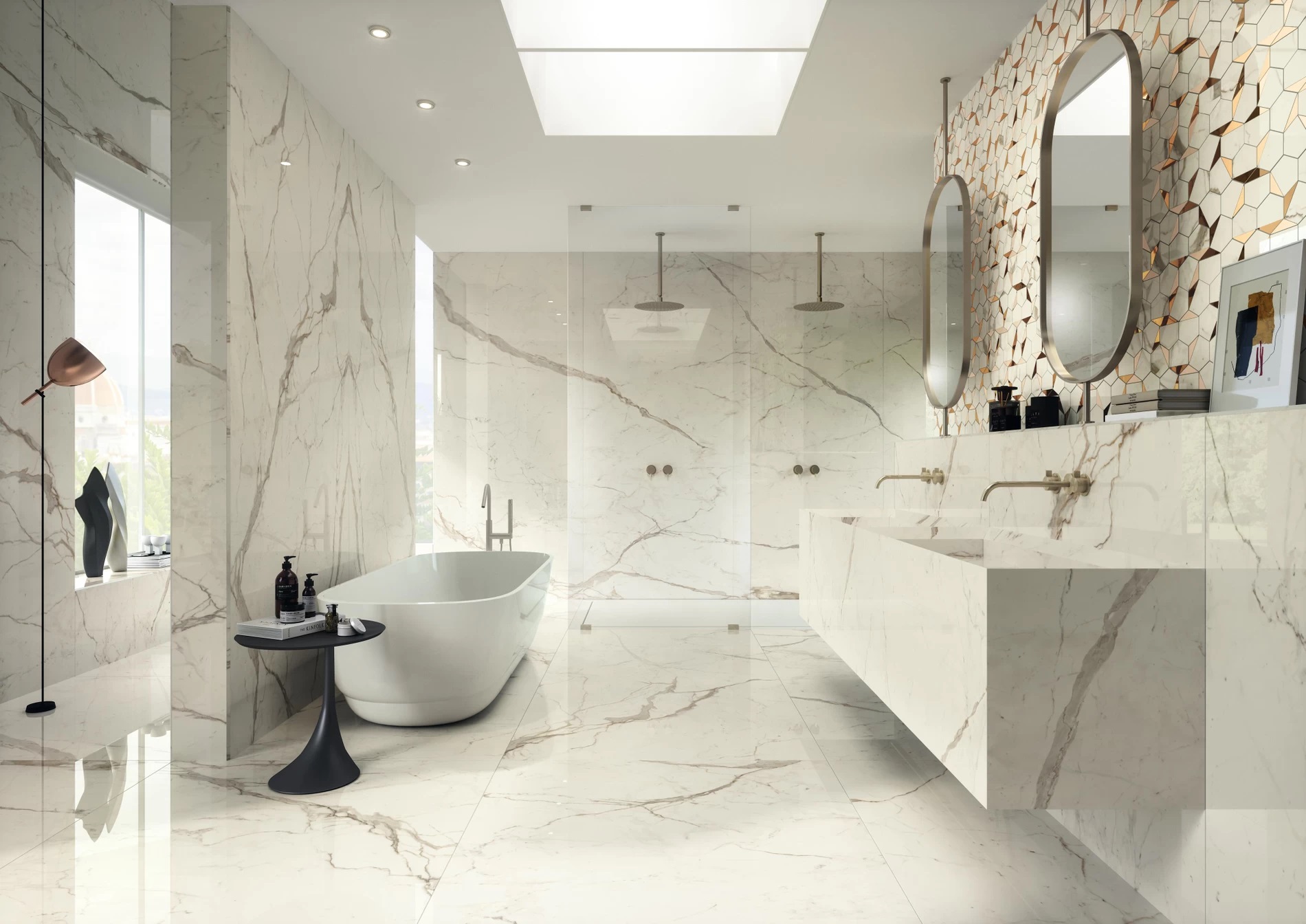 Design luxurious spaces with Tundra Grey Marble tiles that replicate the elegance of Italian-style marble. Robust and anti-slip, the pale grey marble is perfect for outdoor ...